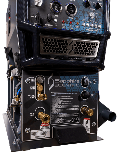 Critical exhaust components are coated with Cerakote, which lowers temperatures by 35%, making the van cooler and safer, plus ensuring less wear on truck mount parts. The 370 EFI also includes the Sapphire Scientific patented heat exchanger and cooling belt technology.