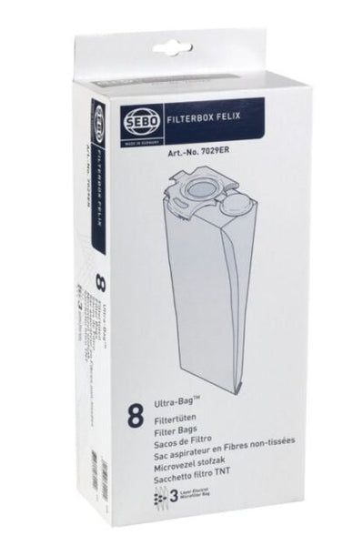 Keep your SEBO vacuum performing at its best with SEBO Ultra-Bags 7029ER. Specifically designed for SEBO Felix, SEBO Dart, and Kleenmaid VC700 vacuum cleaners, these high-quality, multi-layer dust bags offer excellent filtration and optimum cleaning performance.